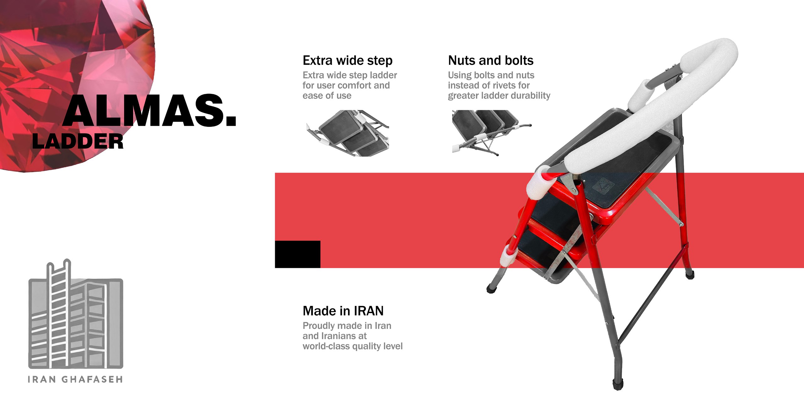 نردبان خانگی پله پهن الماس ۳ پله