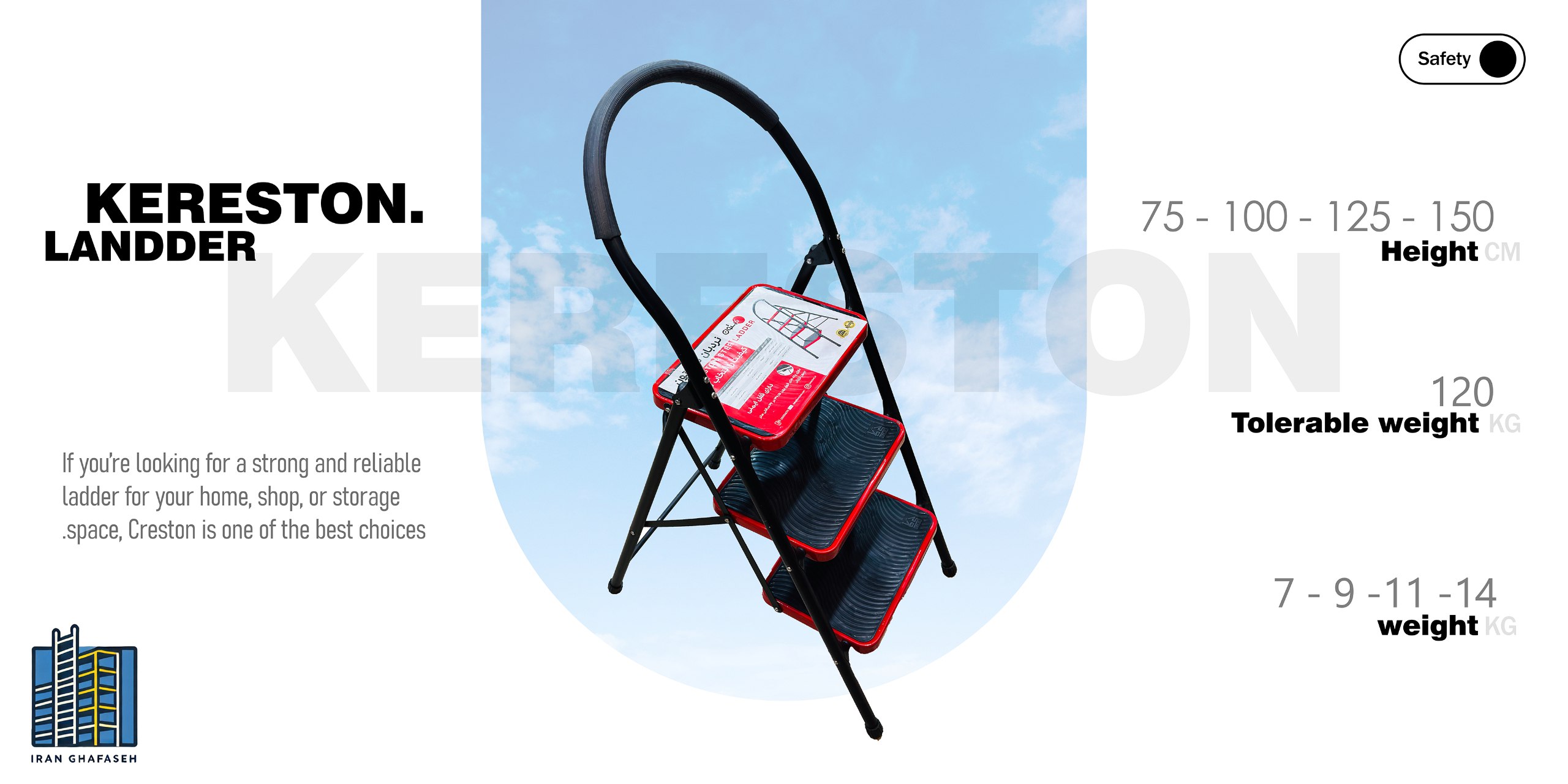 نردبان خانگی پله پهن کرستون ۵ پله