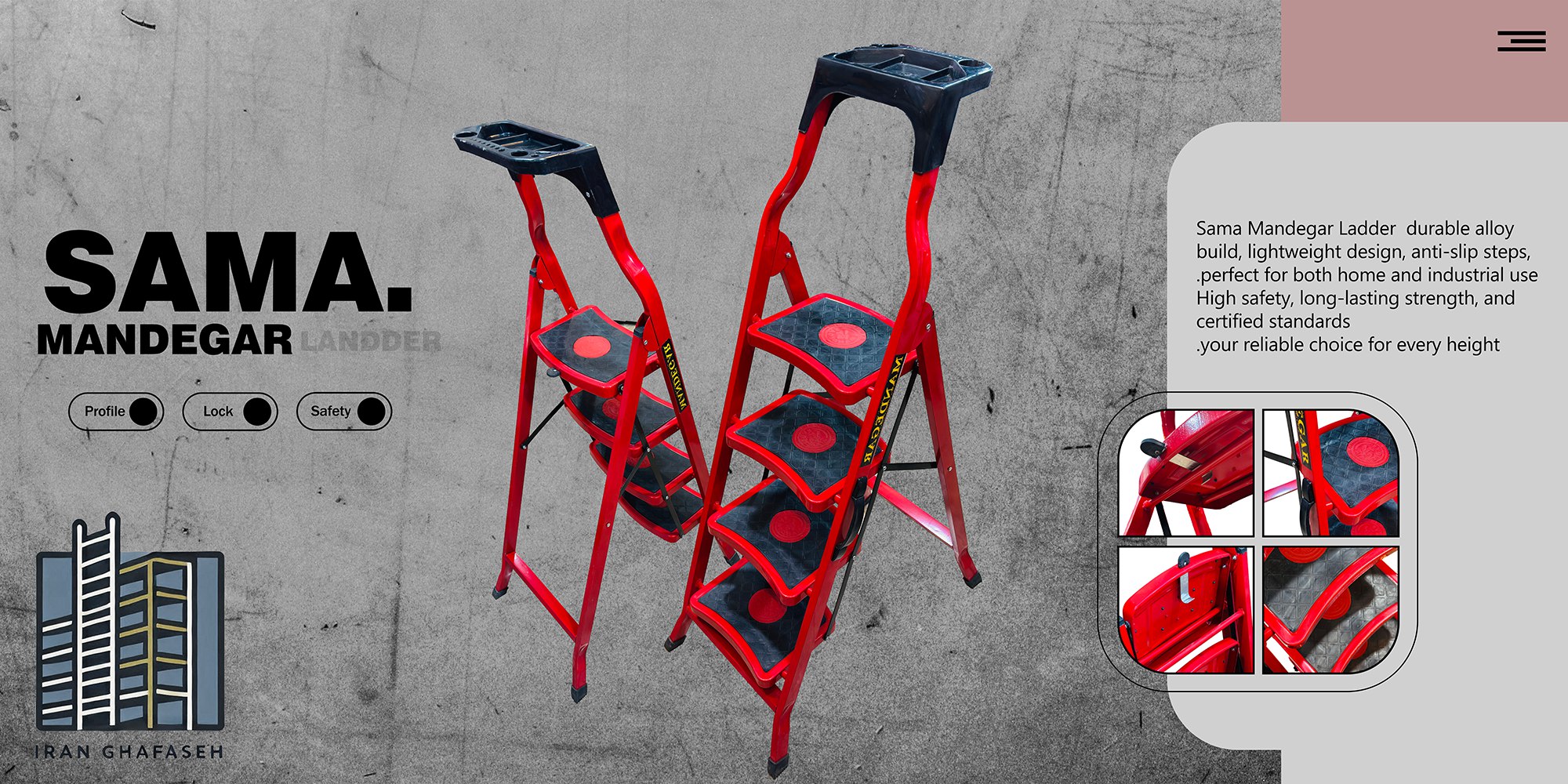 نردبان خانگی پله پهن ماندگار مدل سما ۴ پله