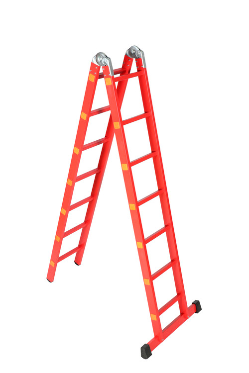 نردبان یکی از ملزومات اساسی در انجام امور و کارهای فنی بوده که از قدیم با تنوع خیلی کم به صورت چوبی و آهنی که بسیار جاگیر، غیر ایمن و سنگین مورد استفاده قرار میگرفت. هم اکنون نردبان دو تکه آسان کار با دو مفصل فولادی، قابلیت استفاده در سه حالت را به ما میدهد. جنس این نردبان کاملا از آلومینیوم فابریک بوده و با روکش رنگ کوره ای و بسیار با کیفیت عایق شده است. همراه این نردبان، رکاب به صورت اشانتیون توسط شرکت ارائه شده که در نردبان های مشابه به هیچ عنوان یافت نمیشود. این رکاب به صورتی طراحی شده که قابلیت جا به جایی در هر پله را دارد و به ما امکان استفاده طولانی مدت با تحمل وزن بسیار بالا و بدون خستگی را میبخشد. این محصول به صورت هشتی شکل به ارتفاع 130 سانتیمتر میرسد و به صورت یک طرفه به ارتفاع 310 سانتیمتر میرسد و بر همین اساس برای استفاده بیرون منزل، داخل حیاط و ادارهجات مناسب است. مفصلهای (قفل ها) این نردبان با پیچ و مهره به بدنه متصل شده و این امر باعث سهولت تعویض آنها در صورت خرابی میشود. این محصول با حجم کم و وزنی کمتر ازهفت کیلوگرم برای جابهجایی و نگهداری بسیار مناسب است و با تهیه آن در واقع هم یک نردبان و هم یک چهارپایه را یکجا خریداری میکنید. در عکس آخر آلبوم، اشارهای به نحوهی استفاده از رکاب شده است.