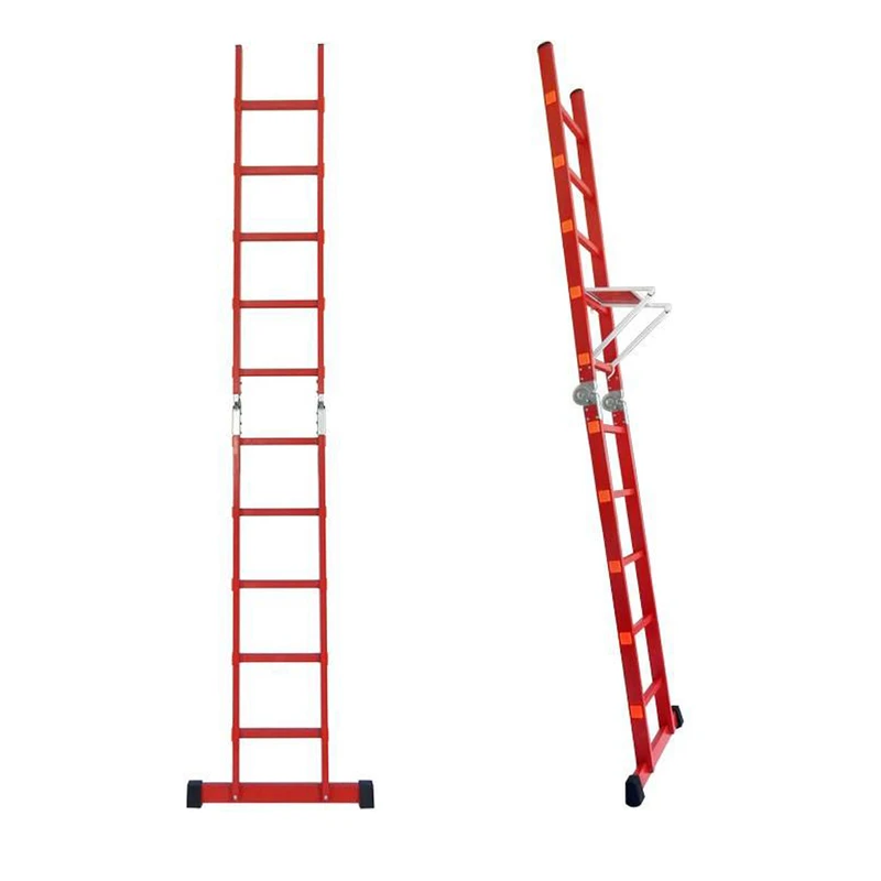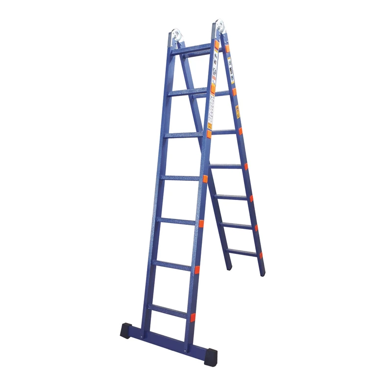 نردبان یکی از ملزومات اساسی در انجام امور و کارهای فنی بوده که از قدیم با تنوع خیلی کم به صورت چوبی و آهنی که بسیار جاگیر، غیر ایمن و سنگین مورد استفاده قرار میگرفت. هم اکنون نردبان دو تکه آسان کار با دو مفصل فولادی، قابلیت استفاده در سه حالت را به ما میدهد. جنس این نردبان کاملا از آلومینیوم فابریک بوده و با روکش رنگ کوره ای و بسیار با کیفیت عایق شده است. همراه این نردبان، رکاب به صورت اشانتیون توسط شرکت ارائه شده که در نردبان های مشابه به هیچ عنوان یافت نمیشود. این رکاب به صورتی طراحی شده که قابلیت جا به جایی در هر پله را دارد و به ما امکان استفاده طولانی مدت با تحمل وزن بسیار بالا و بدون خستگی را میبخشد. این محصول به صورت هشتی شکل به ارتفاع 130 سانتیمتر میرسد و به صورت یک طرفه به ارتفاع 310 سانتیمتر میرسد و بر همین اساس برای استفاده بیرون منزل، داخل حیاط و ادارهجات مناسب است. مفصلهای (قفل ها) این نردبان با پیچ و مهره به بدنه متصل شده و این امر باعث سهولت تعویض آنها در صورت خرابی میشود. این محصول با حجم کم و وزنی کمتر ازهفت کیلوگرم برای جابهجایی و نگهداری بسیار مناسب است و با تهیه آن در واقع هم یک نردبان و هم یک چهارپایه را یکجا خریداری میکنید. در عکس آخر آلبوم، اشارهای به نحوهی استفاده از رکاب شده است.