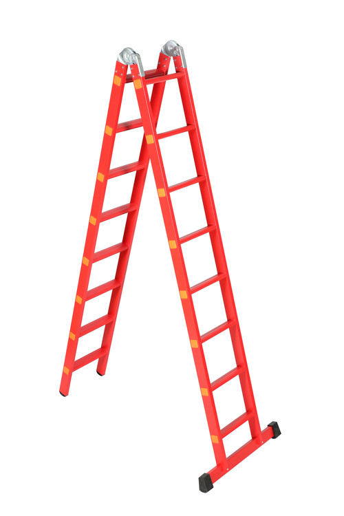 نردبان یکی از ملزومات اساسی در انجام امور و کارهای فنی بوده که از قدیم با تنوع خیلی کم به صورت چوبی و آهنی که بسیار جاگیر، غیر ایمن و سنگین مورد استفاده قرار میگرفت. هم اکنون نردبان دو تکه آسان کار با دو مفصل فولادی، قابلیت استفاده در سه حالت را به ما میدهد. جنس این نردبان کاملا از آلومینیوم فابریک بوده و با روکش رنگ کوره ای و بسیار با کیفیت عایق شده است. همراه این نردبان، رکاب به صورت اشانتیون توسط شرکت ارائه شده که در نردبان های مشابه به هیچ عنوان یافت نمیشود. این رکاب به صورتی طراحی شده که قابلیت جا به جایی در هر پله را دارد و به ما امکان استفاده طولانی مدت با تحمل وزن بسیار بالا و بدون خستگی را میبخشد. این محصول به صورت هشتی شکل به ارتفاع 130 سانتیمتر میرسد و به صورت یک طرفه به ارتفاع 310 سانتیمتر میرسد و بر همین اساس برای استفاده بیرون منزل، داخل حیاط و ادارهجات مناسب است. مفصلهای (قفل ها) این نردبان با پیچ و مهره به بدنه متصل شده و این امر باعث سهولت تعویض آنها در صورت خرابی میشود. این محصول با حجم کم و وزنی کمتر ازهفت کیلوگرم برای جابهجایی و نگهداری بسیار مناسب است و با تهیه آن در واقع هم یک نردبان و هم یک چهارپایه را یکجا خریداری میکنید. در عکس آخر آلبوم، اشارهای به نحوهی استفاده از رکاب شده است.