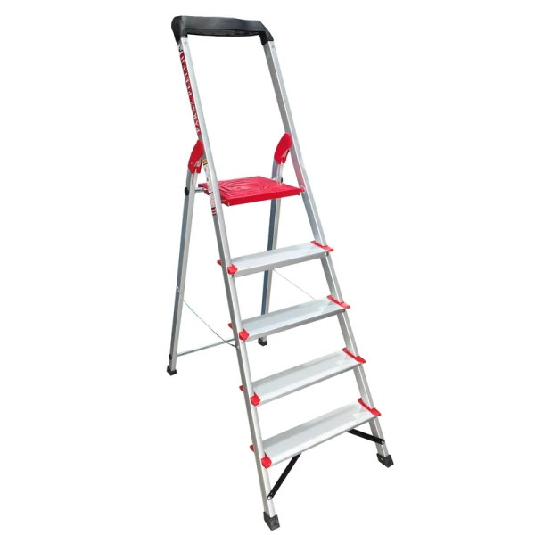 نردبان 5 پله فراز پله مدل زمرد فراز پله یک محصول مقاوم، سبک و با دوام است. برای انجام کارهای عمومی در منازل و کارگاهها بسیار مناسب است.نردبان زمرد را میتوان یکی از بهترین نردبانهای آلومینیومی تولید داخل دانست، باآنکه بسیاری از برندهای معتبر نردبانهای آلومینیومی خانگی تولید میکنند و همهی آنها شباهت بسیار زیادی باهم دارند اما نردبان زمرد که تولید شرکت قدیمی و شناس فراز پله است و نردبانی است که در این چندین سال امتحان خود را در بین مردم پس داده است. وزن بسیار کم این نردبان موجب شده که جابجایی و حمل و نقل آن بسیار آسان باشد. کفپوش عایق و عاج دار روی پلهها از سر خوردن کاربر جلوگیری می کند. همچنین پهن تر بودن سطح پلههای این نردبان با عرض 10 سانتی متر آن را از سایر نردبان های مشابه متمایز ساخته و باعث می شود هنگام استفاده احساس خستگی نکنید و همچنین پله آخر این نردبان پهن تر از سایر پله ها است برای جا پا بهتر و طول و عرض این پله هم 25 سانتیمتر است. همچنین وجود کفپوش لاستیکی برای پایههای نردبان باعث حفاظت از سطح زیرین مثل فرش، موکت و پارکت میشود. طراحی این نردبان به گونه ای است که بدون لرزش بوده و حداکثر ایمنی را برای کاربر فراهم می کند.بالای نردبان دارای جای ابزار بوده و میتوانید ابزار هایی مانند دریل و پیچ گوشتی و ... در آن قرار دهید.همچنین دستهی بزرگی برای حفظ تعادل نیز دارد که کار شما را در هنگام استفاده از نردبان را بسیار آسان میکند.اتصالات بهکار رفته در ساخت این نردبان خانگی، اتصالات پرچی است که خیال شما را بابت خراب شدن آسوده میسازد زیرا اتصالات پرچی حد دوام بسیار بالایی دارند و هر دو پایه با مفتول به هم وصل هستند تا مقاومت نردبان را بالا ببرند.مواد پلاستیکی بکار رفته در نردبان از نوع PVC و مواد آلومینیوم از نوع درجه یک هستند و نردبان تا حداکثر 130 کیلوگرم تحمل وزن دارد.