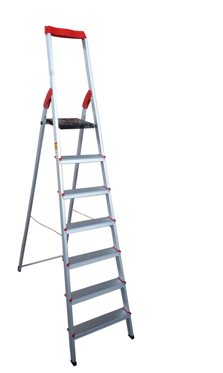 نردبان هفت پله بهمن از جنس آلومینیوم فابریک و نمونه دیزاین آلمانی است. این نردبان علاوه بر وزن بسیار کم از استحکام بسیار بالایی برخوردار است و همین قابلیت این محصول را از سایر محصولات مشابه متمایز کرده است. وزن این محصول حدود 7.5 کیلوگرم با تحمل وزن 120 کیلوگرم است به طوری که همه افراد نظیر افراد مسن و حتی بانوان به راحتی قادر به حمل آن هستند و همچنین ارتفاع آن برای خانههای آپارتمانی، فروشگاهها، ادارات، کارگاهها و مغازهها مناسب است. پایههای این محصول از جنس پلاستیک است و احتمال سر خوردن را به حداقل می رساند و طبقه فوقانی آن با ابعاد بزرگ تر از سایر پلهها به فرد تعادل و راحتی بالایی میبخشد و دچار لرزش نخواهد شد. این نردبان دارای جایگاه ابزار در بخش بالای دسته است و باعث سهولت در انجام کارهایی نظیر دریل کاری چوب پرده زدن وکارهای فنی است. قسمت بالای نردبان دارای جایگاه تکیه گاه است و به فرد امنیت و تعادل بالایی را برای ایستادن در پله ی آخر میبخشد.