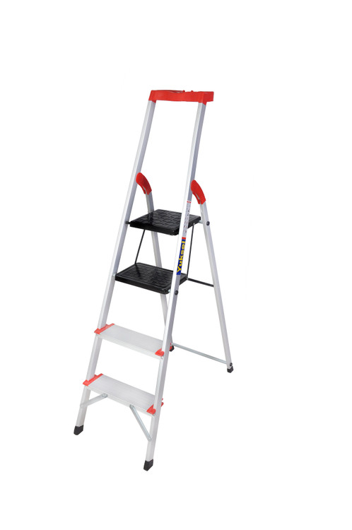 نردبان چهار پله یوکسل از جنس آلومینیوم فابریک و نمونه دیزاین آلمانی است. به نسبت نردبان های قدیمی یوکسل، مدل جدید +2 دارای 2 پله ی پهن در بالای نردبان می باشد و نیز ارتفاع آن 25 سانتی متر بیشتر از مدل های قبلی است که این وجه تمایز دسترسی به ارتفاع بالاتر با همان تعداد پله را میسر می سازد. همچنین طراحی 2 پله ی پهن در بالای این نردبان، ایستادن طولانی مدت در پله ی پایینی را هم برای فرد فراهم ساخته است. این نردبان علاوه بر وزن بسیار کم از استحکام بسیار بالایی نسبت به مدل های قبلی برخوردار است و همین قابلیت این محصول را از سایر محصولات مشابه متمایز کرده است. دیگر ویژگی برجسته ی این نردبان برخورداری از پله های پهن طول 12 سانتیمتری در پایین است که نه تنها به تعادل و امنیت هرچه بیشتر شما کمک می کند، بلکه به زیبایی آن نیز می افزاید و شباهت آن را به نمونههای آلمانی بیشتر میکند. وزن این محصول حدود 6 کیلوگرم با تحمل وزن 130 کیلوگرم است به طوری که هر فردی، حال چه مسن و چه خرد سال به راحتی قادر به حمل آن خواهند بود . ارتفاع این نردبان برای خانههای آپارتمانی بسیار مناسب است و به شما این امکان را میدهد که به نحو احسنت به سقف و یا سطوح بالا دسترسی و تسلط داشته باشید. پایههای این محصول از جنس پلاستیک است و احتمال سر خوردن را به حداقل میرساند و داشتن ابعاد بزرگتر در دو طبقه فوقانی به شما تعادل و راحتی بالایی میبخشد و دچار لرزش نخواهد شد. این نردبان دارای جایگاه ابزار در بخش بالای دسته است و باعث سهولت در انجام کارهایی نظیر دریل کاری، چوب پرده زدن وکارهای فنی است. قسمت بالای نردبان دارای جایگاه تکیه گاه است و به فرد امنیت و تعادل بالایی برای ایستادن در پله ی آخر را می دهد.