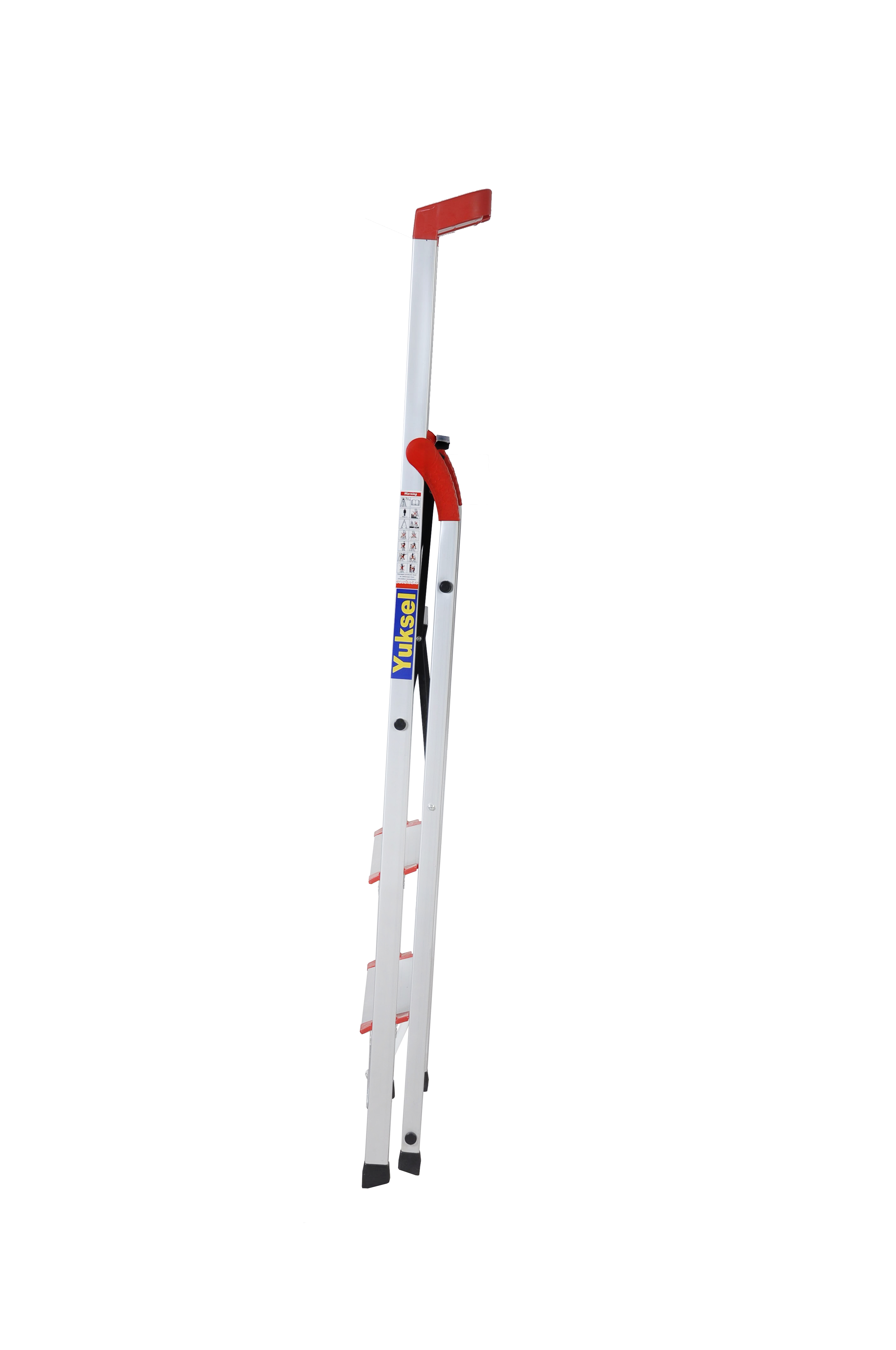 نردبان چهار پله یوکسل از جنس آلومینیوم فابریک و نمونه دیزاین آلمانی است. به نسبت نردبان های قدیمی یوکسل، مدل جدید +2 دارای 2 پله ی پهن در بالای نردبان می باشد و نیز ارتفاع آن 25 سانتی متر بیشتر از مدل های قبلی است که این وجه تمایز دسترسی به ارتفاع بالاتر با همان تعداد پله را میسر می سازد. همچنین طراحی 2 پله ی پهن در بالای این نردبان، ایستادن طولانی مدت در پله ی پایینی را هم برای فرد فراهم ساخته است. این نردبان علاوه بر وزن بسیار کم از استحکام بسیار بالایی نسبت به مدل های قبلی برخوردار است و همین قابلیت این محصول را از سایر محصولات مشابه متمایز کرده است. دیگر ویژگی برجسته ی این نردبان برخورداری از پله های پهن طول 12 سانتیمتری در پایین است که نه تنها به تعادل و امنیت هرچه بیشتر شما کمک می کند، بلکه به زیبایی آن نیز می افزاید و شباهت آن را به نمونههای آلمانی بیشتر میکند. وزن این محصول حدود 6 کیلوگرم با تحمل وزن 130 کیلوگرم است به طوری که هر فردی، حال چه مسن و چه خرد سال به راحتی قادر به حمل آن خواهند بود . ارتفاع این نردبان برای خانههای آپارتمانی بسیار مناسب است و به شما این امکان را میدهد که به نحو احسنت به سقف و یا سطوح بالا دسترسی و تسلط داشته باشید. پایههای این محصول از جنس پلاستیک است و احتمال سر خوردن را به حداقل میرساند و داشتن ابعاد بزرگتر در دو طبقه فوقانی به شما تعادل و راحتی بالایی میبخشد و دچار لرزش نخواهد شد. این نردبان دارای جایگاه ابزار در بخش بالای دسته است و باعث سهولت در انجام کارهایی نظیر دریل کاری، چوب پرده زدن وکارهای فنی است. قسمت بالای نردبان دارای جایگاه تکیه گاه است و به فرد امنیت و تعادل بالایی برای ایستادن در پله ی آخر را می دهد.